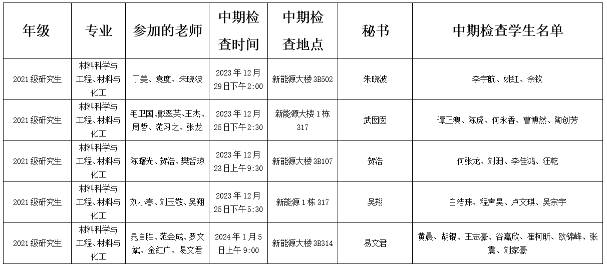 材料学院2021级研究生中期检查安排表(四)