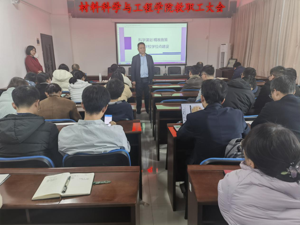 11月26日下午,材料科学与工程学院在新能源大楼1-908会议室召开了全体教职员工大会。会议由党委副书记邵巧艳主持,全体教职工参会。
