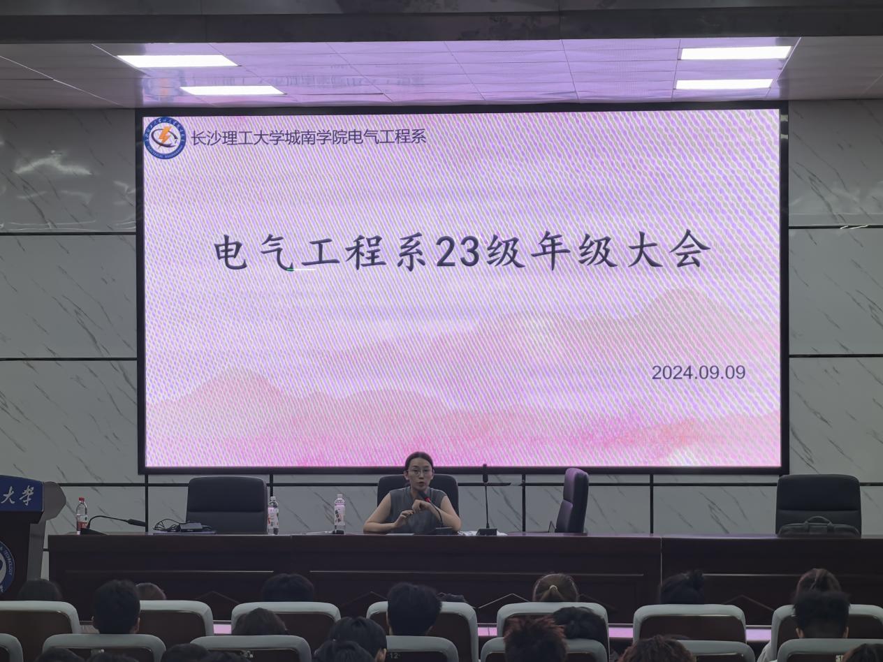 9月9日晚19:00,伟德betvlctor体育官网城南学院电气工程系于在四教报告厅召开了23届学生年级大会。本次会议由辅导员向陈老师主持,23级全体同学参会。