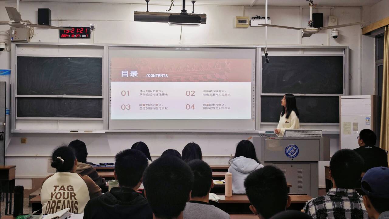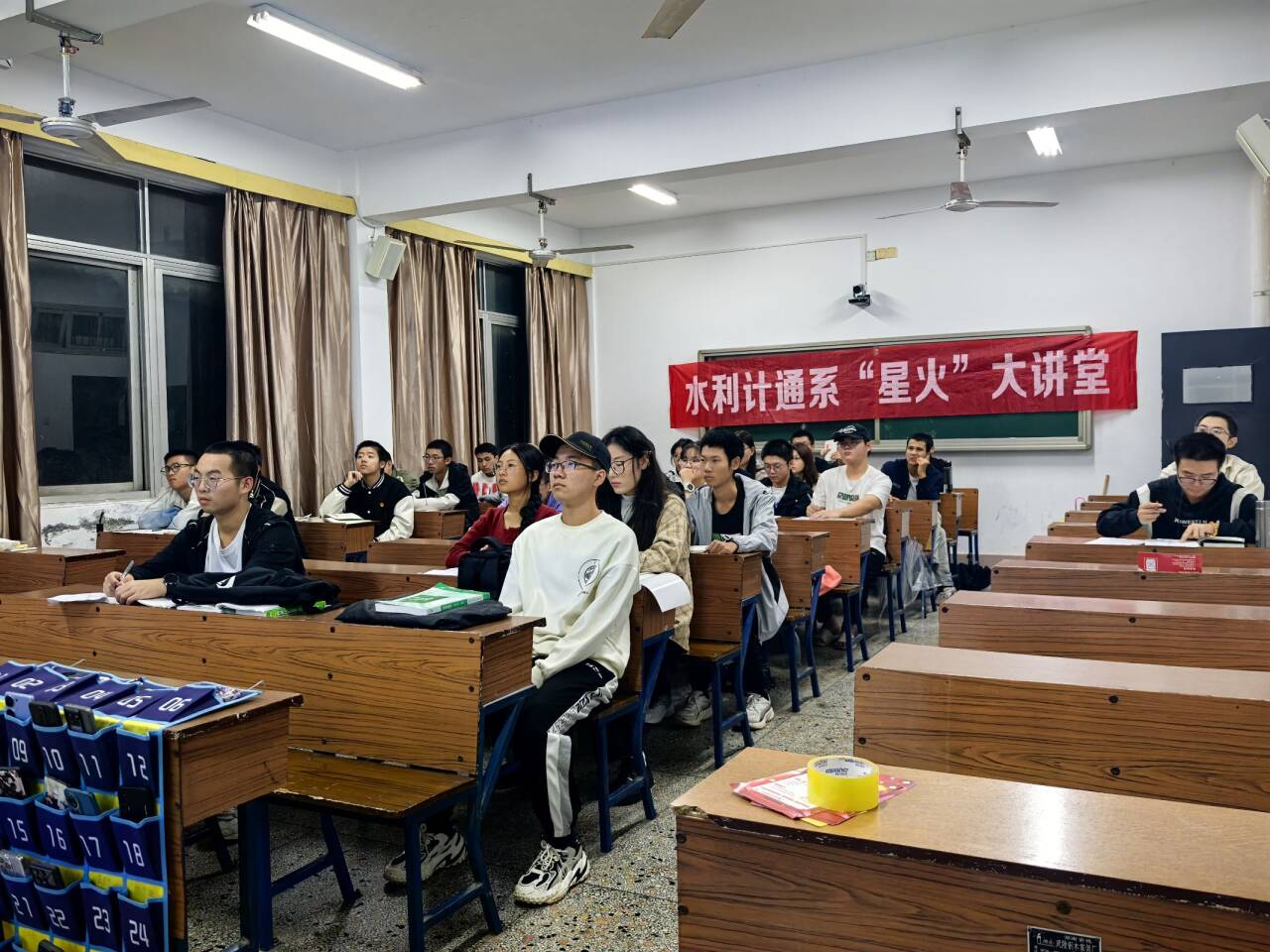 为深入学习贯彻党的二十届三中全会精神,2024年10月27日19:30,水利计通系举办“星火”大讲堂第七讲——“学习贯彻党的二十届三中全会精神”主题活动。尹姿君、邓智敏、张航三位同志走入晚自习教室,面向2024级学生开展“学习贯彻党的二十届三中全会精神”主题宣讲。