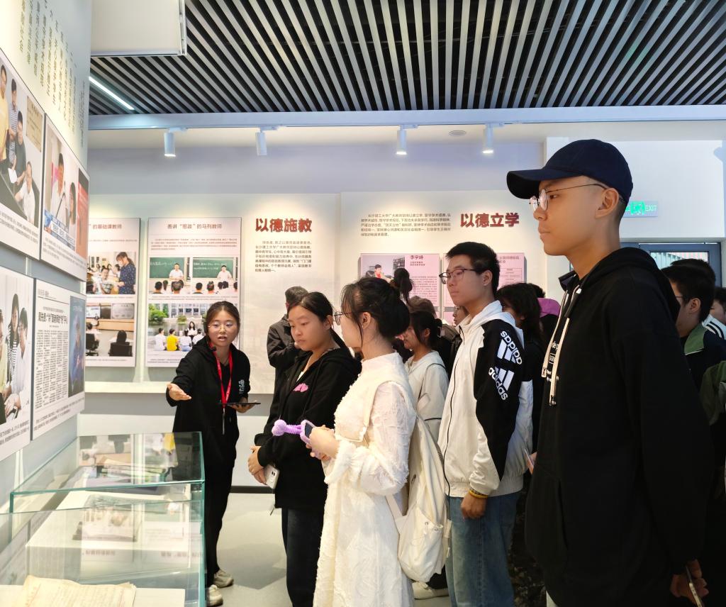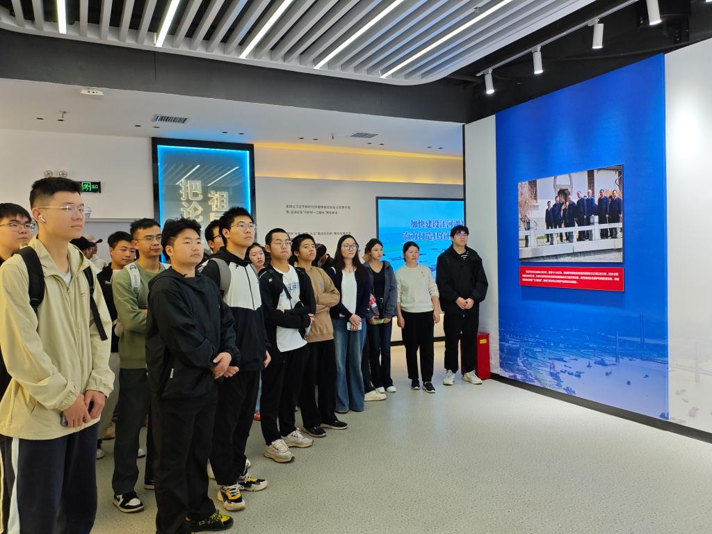 随后,新生们来到了洞庭湖实验室。在这里,讲解员简要介绍了洞庭湖的基本情况以及洞庭湖水环境治理与生态修复湖南省重点实验室的建设情况。通过服务“交通强国”的中坚力量、服务国家基础设施建设的坚实力量、服务国家能源安全的重要力量、“守护好一江碧水”的独特力量等四个维度的讲解,同学们对环境治理与生态修复中的关键技术和重要成果有了更加深入的了解。特别是在“洞庭湖环境保护与综合治理研究中心”,大家通过操作虚拟驾驶舱和电子沙盘,全景式概览了洞庭湖区,了解了洞庭湖水系分布、湖泊变迁和生态保护区域,对洞庭湖的环境保护与综合治理有了更加直观的认识。