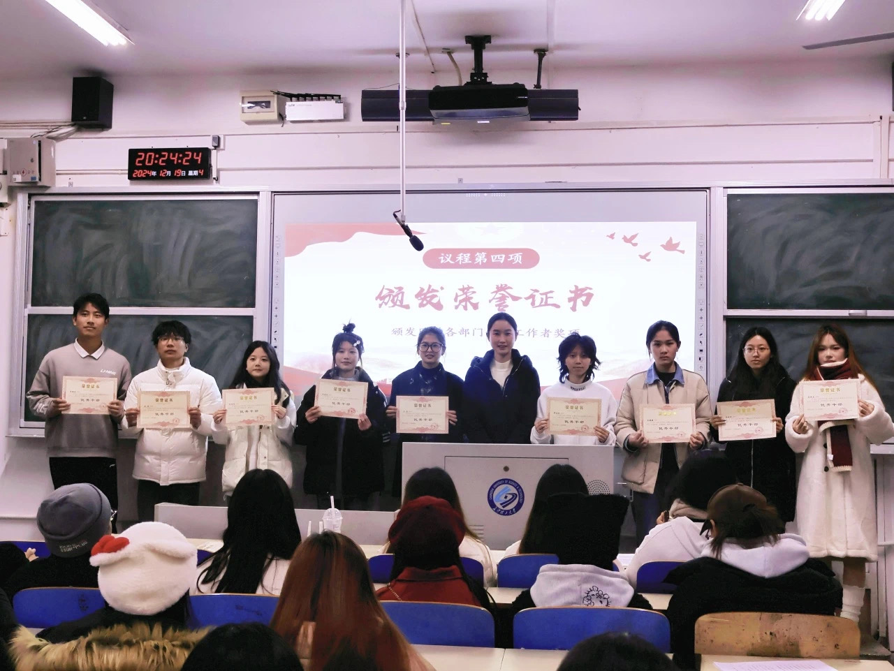 在热烈的掌声中,大会迎来了激动人心的颁奖环节。团委书记周心怡老师为在过去一年中表现突出的个人和集体颁发了荣誉证书。这份荣誉不仅是对他们辛勤付出的肯定,更是对大家未来继续努力的激励。