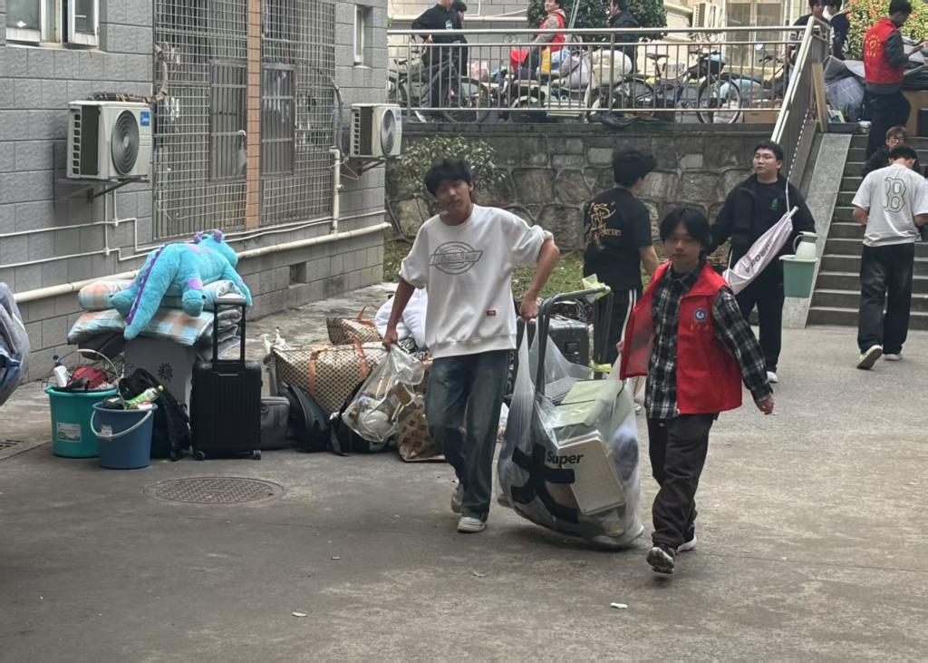 下午2点,搬迁工作正式开始。各系辅导员现场协调指挥,学生党员、学生干部及自管会志愿者分工明确,帮助转专业同学搬运生活用品、学习资料,并引导新宿舍入住。针对行李较多、搬迁距离较远或所在楼层较高的同学,志愿者们主动提供“一对一”帮扶,确保搬迁过程顺利。考虑到部分同学跨区域搬迁的实际需求,学院还联系了专业搬运公司协助运输,进一步提高了搬迁效率,减轻了同学们的负担。