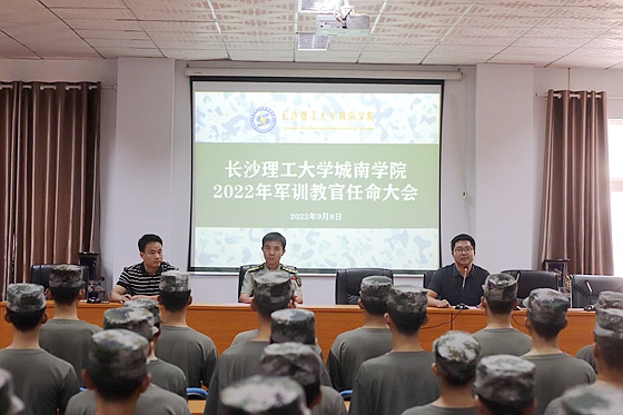 98日下午,城南学院在2201召开2022年军训教官任命大会。学校学工部副部长、校武装部副部长王煜坤,城南学院党委副书记陶传谱,全体带训辅导员以及带训教官参加会议。本次会议由城南学院党委委员、学工部部长肖义慧主持。