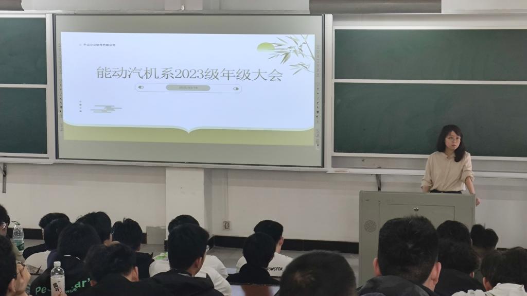 3月25日下午,能动汽机系于12教300召开2023级年级大会。本次大会由能动汽机系2023级辅导员李若云主持召开,能动汽机系2023级全体学生参加。会议围绕课堂考勤、成绩分析、宿舍卫生等多个关键议题展开,旨在总结过往经验教训,部署新学期工作,推动学生全面发展。
