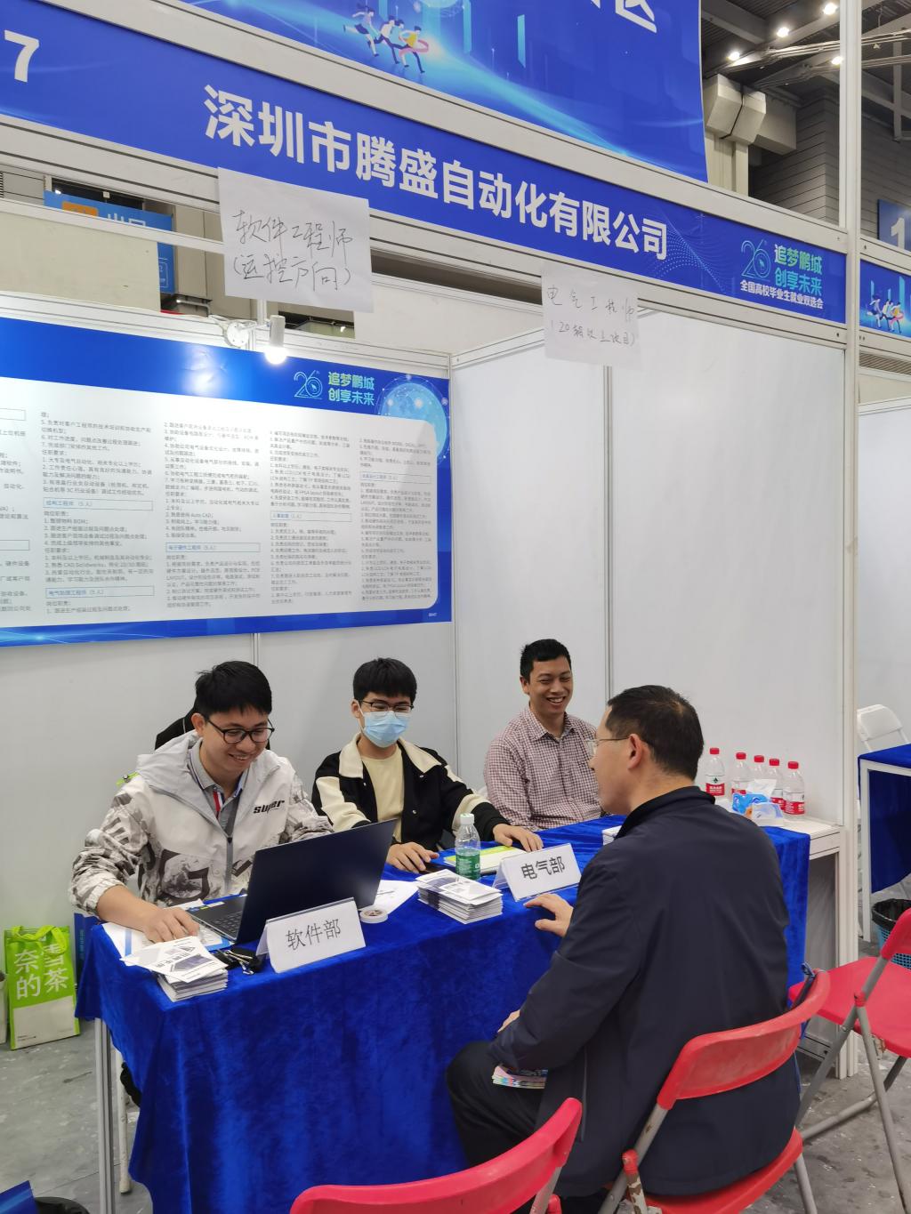 4月1日,在深圳市人力资源和社会保障局举办的第26届全国高校毕业生就业双选会上,朱广峰重点对接了深圳市大族智能控制科技有限公司、深圳市诠美整体家居发展有限公司、深圳市巡洋国际物流有限公司、深圳市同一方光电技术有限公司、深圳民爆光电股份有限公司、深圳市天得一环境科技有限公司、深圳市恩玖科技有限公司、深圳市康冠科技股份有限公司等8家企业,与用人单位就深化校企合作、加强人才培养与输送等方面进行了深入交流,并达成了合作共识。