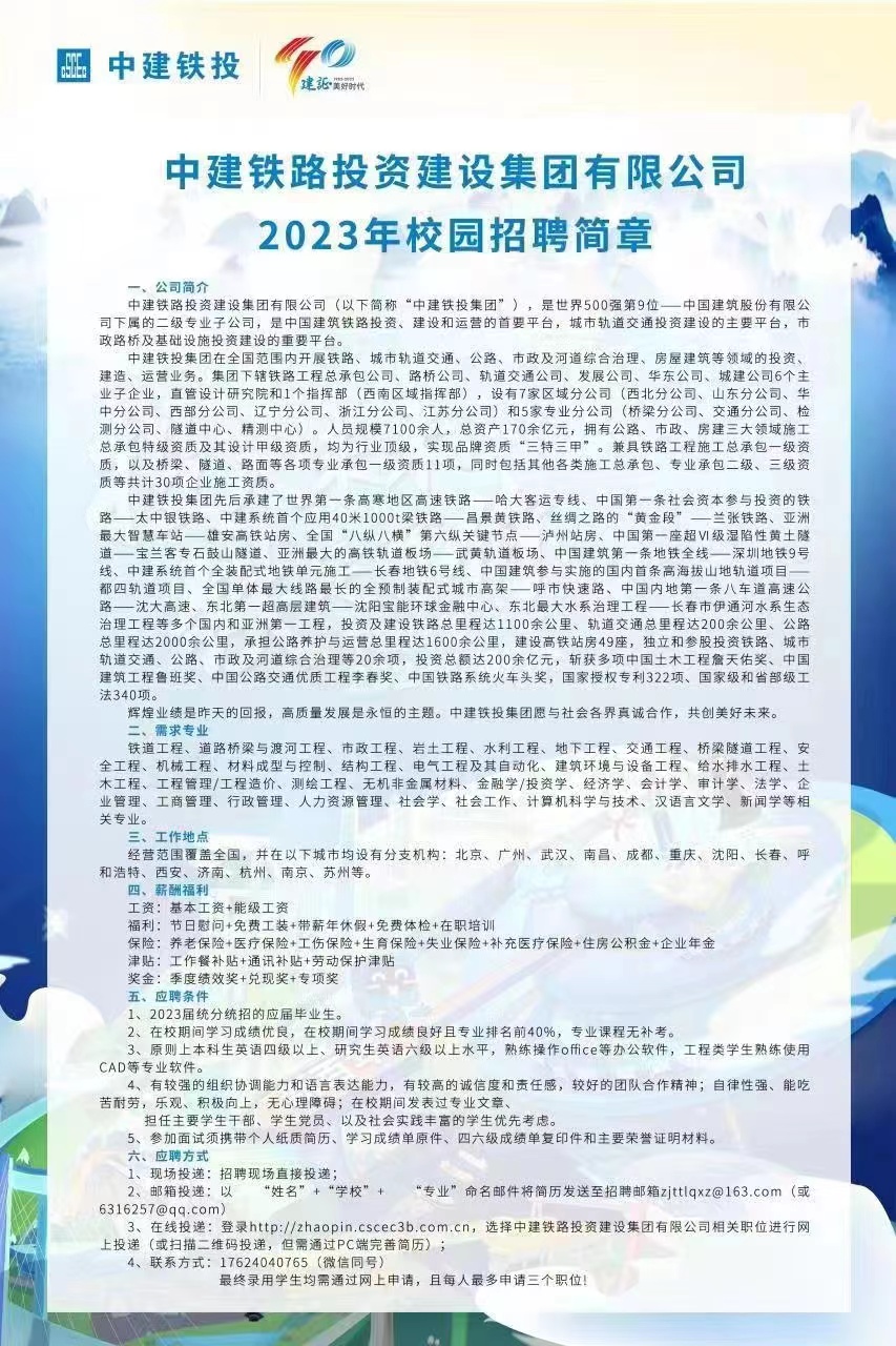 需求专业:房屋建筑类、基础设施类、勘察设计类、金融财务类、职能管理类和能够从事测量、物资、材料、物设等岗位的等等