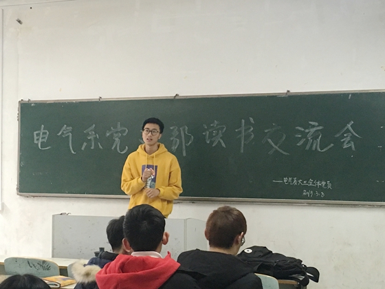 3月8日中午,电气工程系第一学生党支部全体党员在6教101教室召开寒假读书交流会。会议由党员沈仁翔主持。