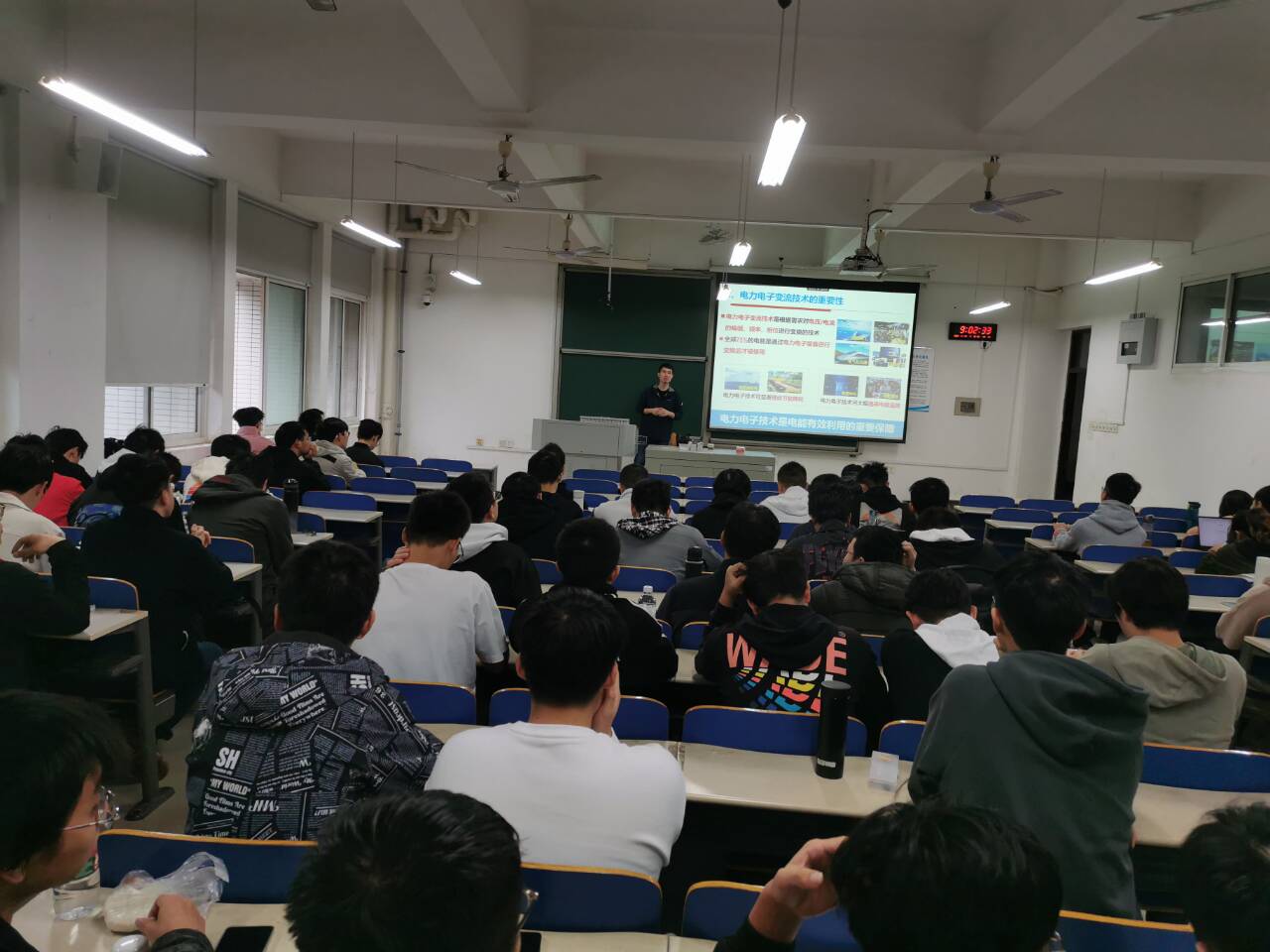 11月22日上午,电气学院在工科一号楼B218教室,举办了通识教育学术讲座,我院高家元博士作了“电力电子技术在电力系统中的应用”的主题讲座,教务办主任黄建华和76名相关学生聆听了讲座。