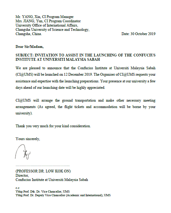 筹办并参加马来西亚沙巴大学孔子学院成立仪式 |