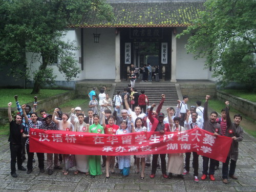 2012年5月12日上午,CCTV第五届“汉语桥”在华留学生汉语大赛在湖南大学举行,来自中南大学、湖南大学、湖南师范大学、湘潭大学、伟德betvlctor体育官网等高校的25名留学生参加了此次比赛。此次比赛由中央电视台、国家汉办/孔子学院总部联合主办,全国百余所知名大学的留学生参加了各赛区的选拔赛。