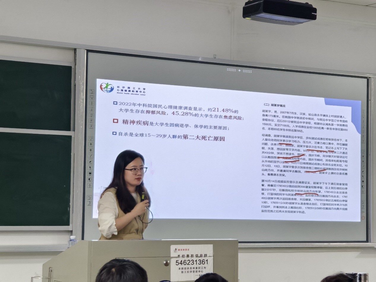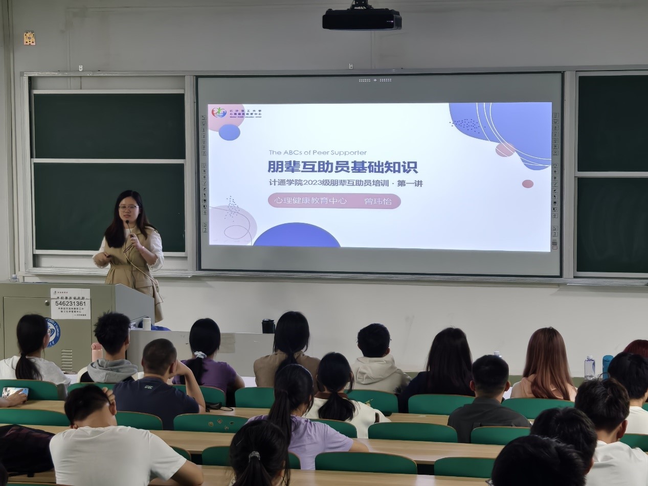 为提高朋辈心理互助能力,加强学生心理素质,培养学生健全人格,4月17日晚,计通学院在金盆岭6-312教室举行了2023级朋辈心理互助员上岗培训班开班仪式,伟德betvlctor体育官网心理健康教育中心曾玮怡担任第一讲面授教师,23级辅导员刘洋主持,23级全体心理委员、寝室长、学生骨干参加。