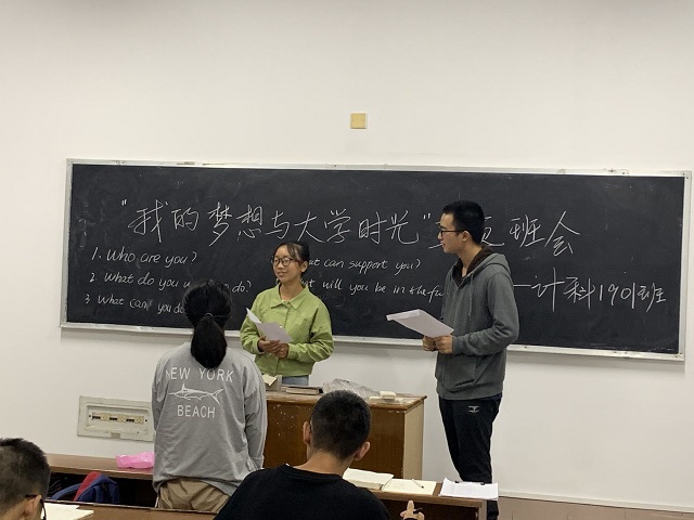 10月16日晚7:30,计通学院2019级新生在金盆岭校区各班晚自习教室召开“我的梦想与大学生活”班会活动。