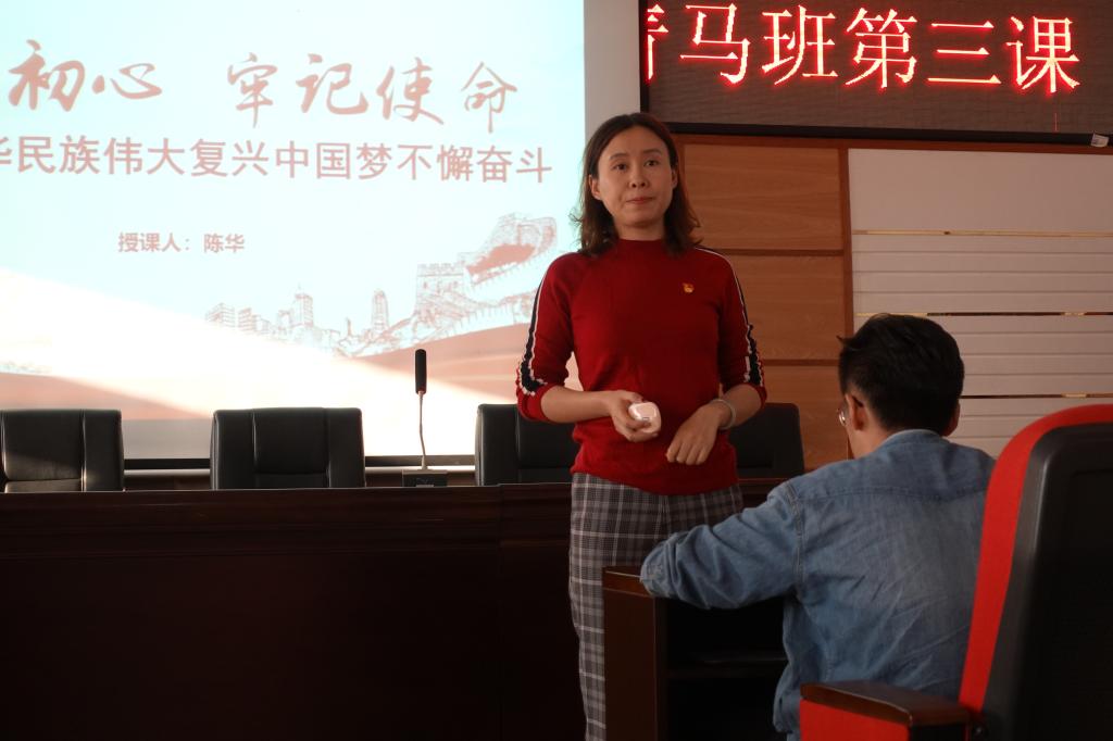 在本次教育活动中,陈华向大家讲述了红军长征途中“半条被子”的故事,由此引出了共产主义者的初心。随后,她强调:“不忘初心”就是要牢记历史,吸取教训,就是要坚定政治灵魂,就是要敢于担当。作为学生干部的我们,要坚定信念跟党走、直面使命敢担当,更要品行端正作表率。这样才能做到“不忘初心、牢记使命”,才能成为一个合格的、能禁得起组织考验的共青团员。