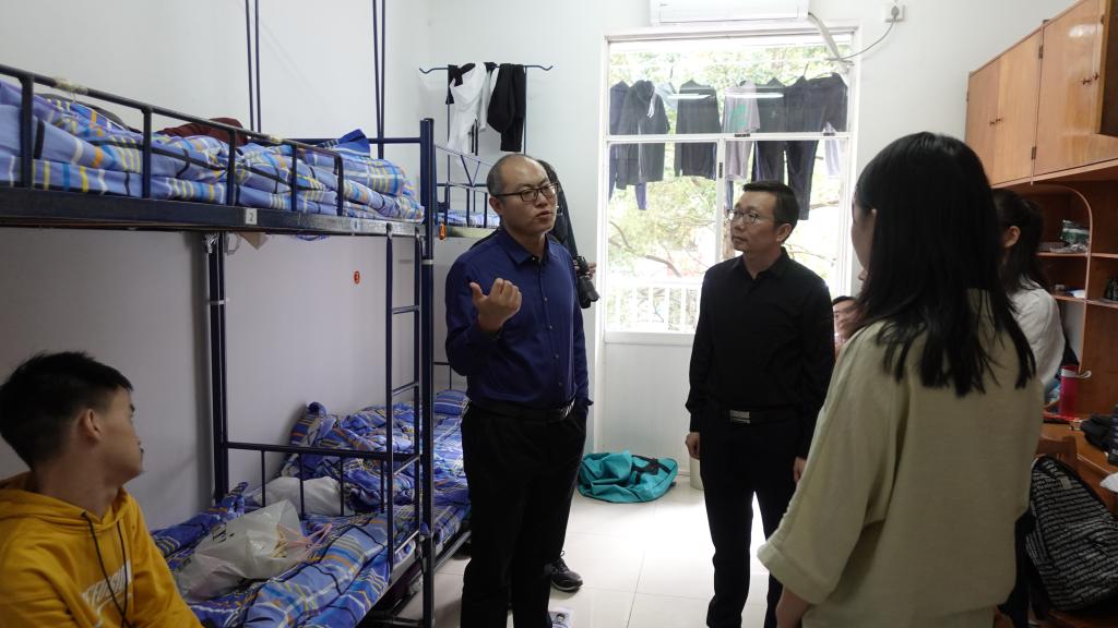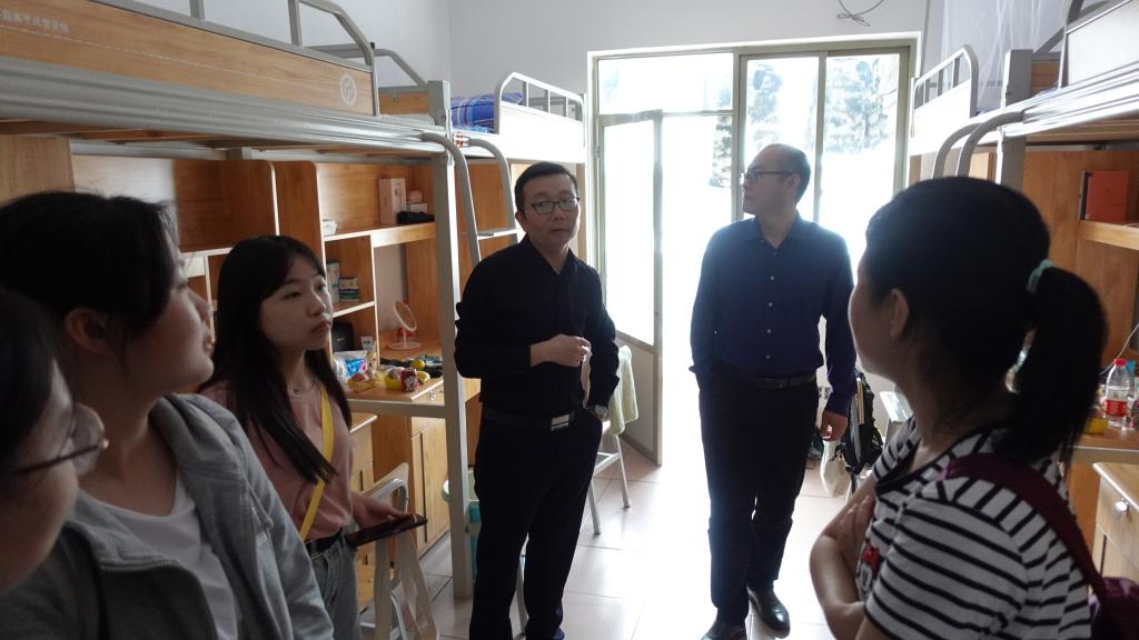为了解新生入学适应情况,9月18日下午,计通学院党委书记刘宏伟、党委副书记涂道勇、新生辅导员聂静、齐铁钧一同前往学生宿舍,看望新同学。