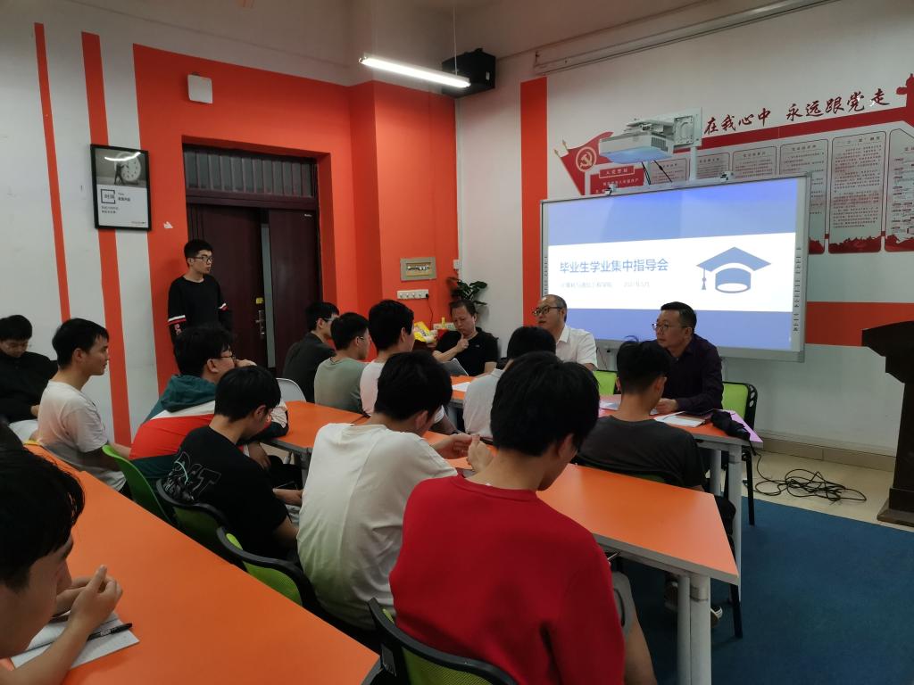 5月28日下午,计通学院在理科楼B103召开了毕业生学业集中指导会。学院党委书记刘宏伟、副院长王威、副书记涂道勇出席。17级辅导员潘枝花及就业辅导员聂静参会,40余名毕业生参加。