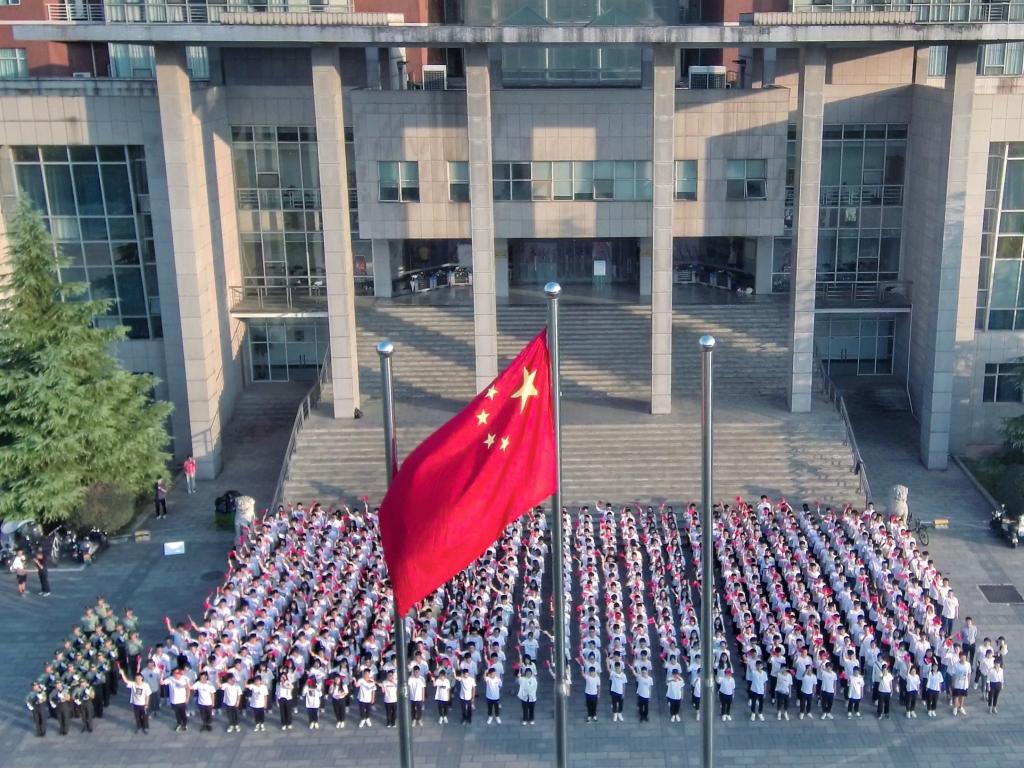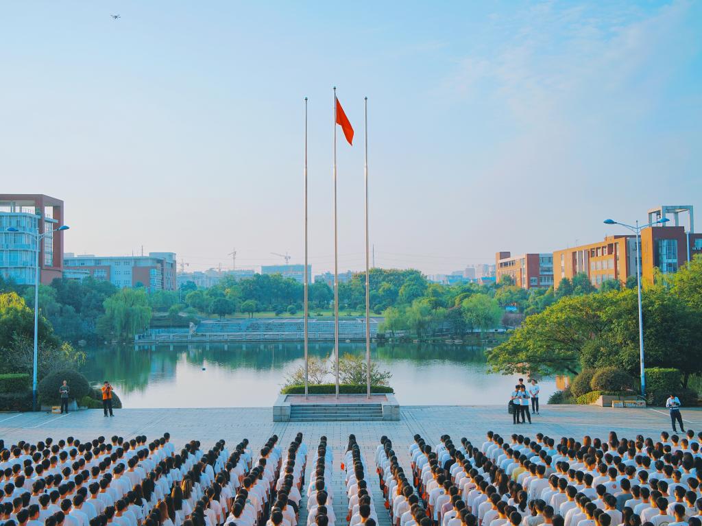 “五星红旗迎风飘扬”,在嘹亮的歌声,国旗班同志们踏着坚定有力的步伐护送国旗进场。伴随着慷慨激昂的《义勇军进行曲》,全体师生庄严肃立,注视着鲜艳的五星红旗冉冉升起,高高飘扬在学校上空。国旗下,全体同学庄严宣誓:志存高远,坚定信念,热爱祖国,服务人民!誓言铿锵、回声嘹亮,深情诠释了计通学子立志成才,为国奉献的决心。