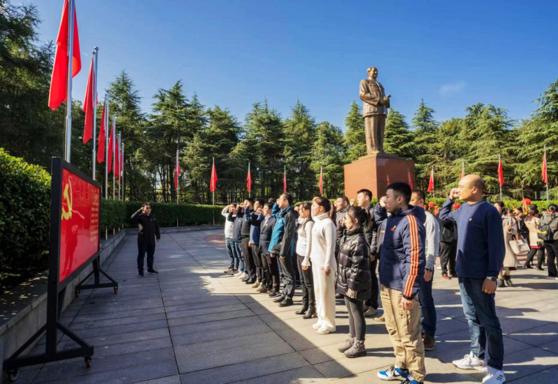 11月24日晴空万里,风和日丽。伟德betvlctor体育官网2021级湖南公路运输管理研修培训班全体同学及带班老师共计42人,在学校的组织下,统一乘车前往伟人故里,毛泽东同志故乡——韶山,开展体验式党性教育活动。在毛主席铜像前,同学们举行了庄严肃穆的瞻仰仪式并敬献花篮,向伟大的共和国缔造者毛主席致敬,表达对伟人的深切缅怀和敬仰之情。随后,党员同志们举行了重温入党誓词仪式,表达了党员同志们矢志不渝践行使命的初心。接下来,同学们在讲解员的带领下,依次参观了毛泽东同志纪念馆,毛泽东同志故居和毛泽东同志晚年工作及生活过的地方——滴水洞。