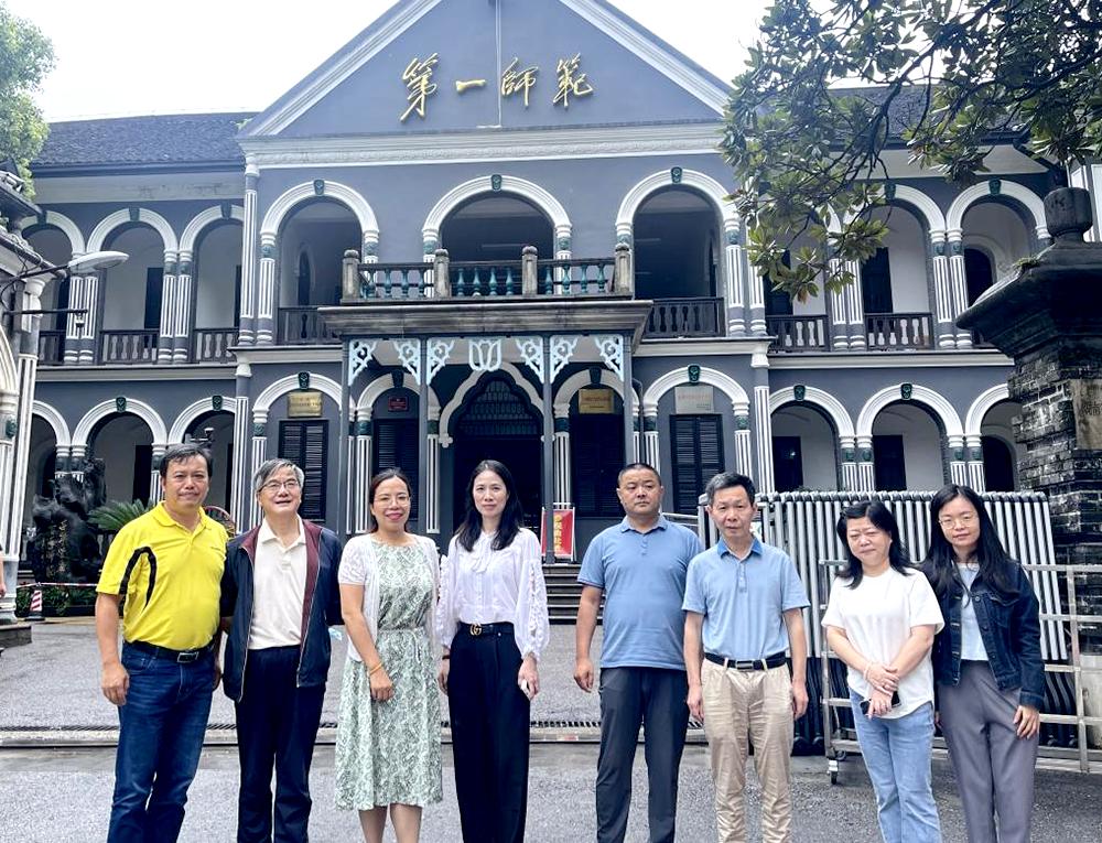 下午,全体成员去往湖南省第一师范参观学习。湖南第一师范坐落于湘江之滨,这里是中国革命的“红色摇篮”,毛泽东曾在此求学、执教,并从事早期革命活动,还培养了周世钊、蔡和森、何叔衡、任弼时、李维汉等一大批革命先辈。主楼正中的校名“第一师范”四个大字就是由毛泽东亲笔题写的。大家参观了教室、宿舍、大礼堂等旧址以及各个陈列史实资料、复原历史场景的展厅,身临其境地感受了革命先烈们的勤学苦读、砥砺前行的峥嵘岁月。
