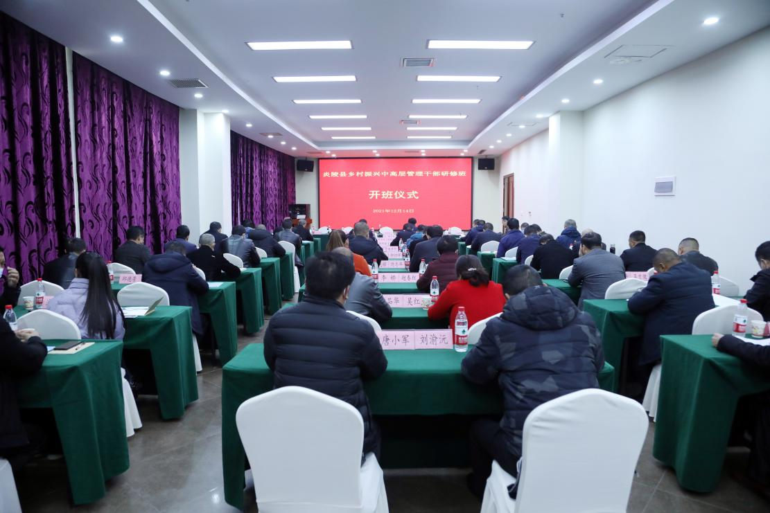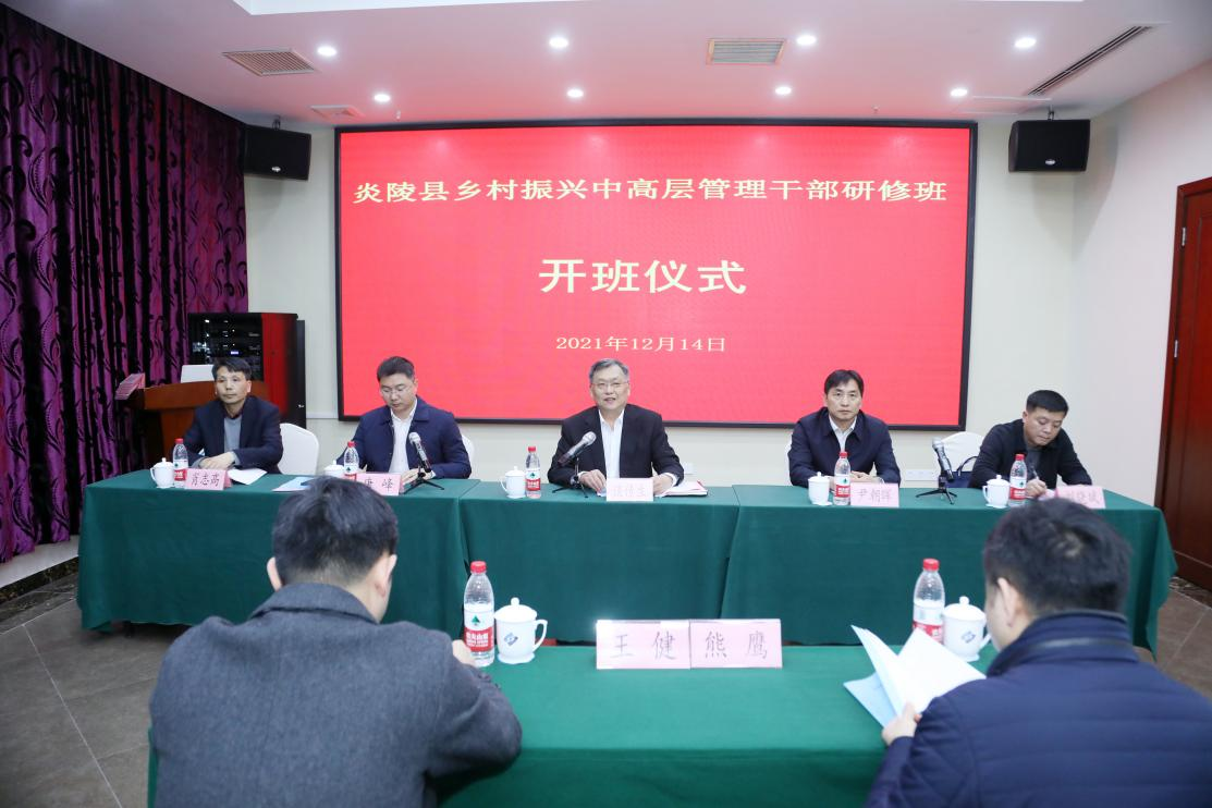 2021年12月14日,伟德官网承办的“炎陵县乡村振兴中高层管理干部研修班”,在伟德官网国际学术交流中心举行开班仪式。副校长谈传生出席开班仪式并致辞。炎陵县委书记尹朝晖,县委组织部长唐峰,县委常委、副县长刘晓斌,副县长肖志高,继续教育学院、建筑学院、设计艺术学院、成果转化中心等学院、部门负责人,及全体学员参加开班仪式。开班仪式由炎陵县委组织部长唐峰主持。