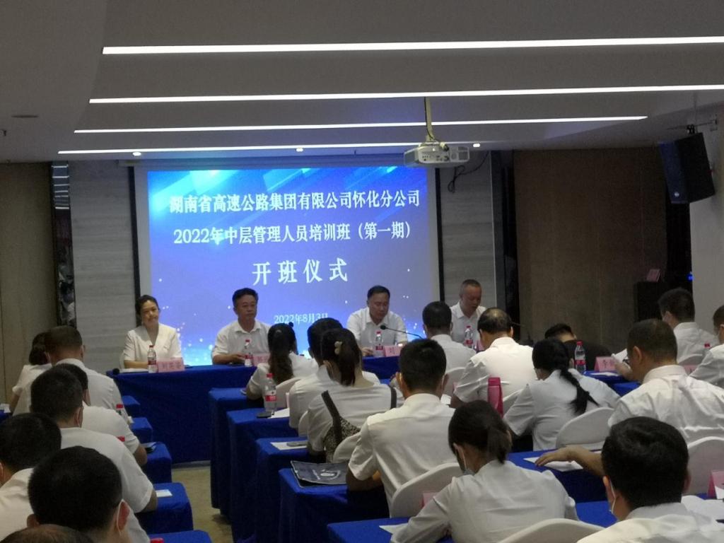 2022年8月3日,由湖南省高速公路集团有限公司怀化分公司委托、伟德官网承办的“湖南省高速公路集团有限公司怀化分公司2022年中层管理干部培训班(第一期)”,在云塘校区国际学术交流中心正式开班。湖南省高速公路集团有限公司怀化分公司党委书记、总经理刘刚,党委副书记兼工会主席吴林,伟德betvlctor体育官网继续教育学院院长邹兴平、副院长刘英姿等,参加了本次开班仪式。开班仪式由吴林副书记主持,邹兴平院长代表学院在开班仪式上致词,对培训班的全体参训学员表示热烈的欢迎,对湖南高速公路集团公司怀化分公司表示衷心感谢,并对双方更加广泛和深入的合作寄予深切的期待;刘刚总经理代表委托单位在开班仪式上讲话,就本次培训学习向全体受训学员进行训前动员,并对全体学员提出了具体的受训要求和期望。