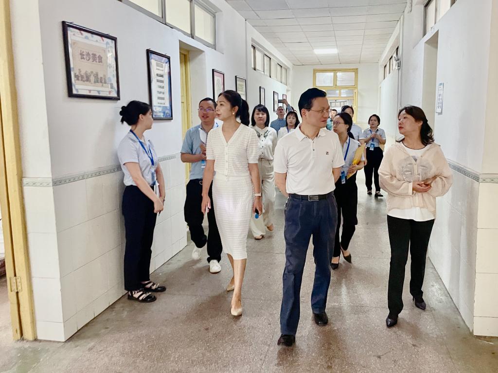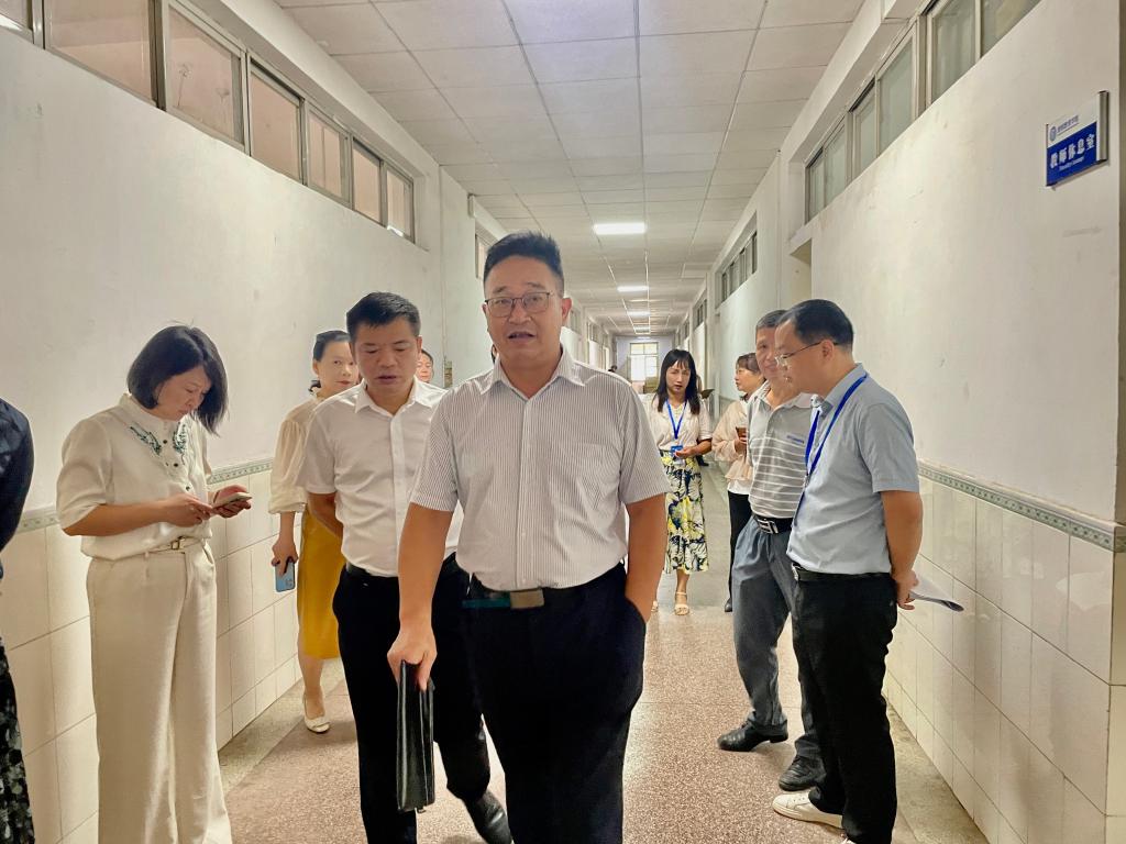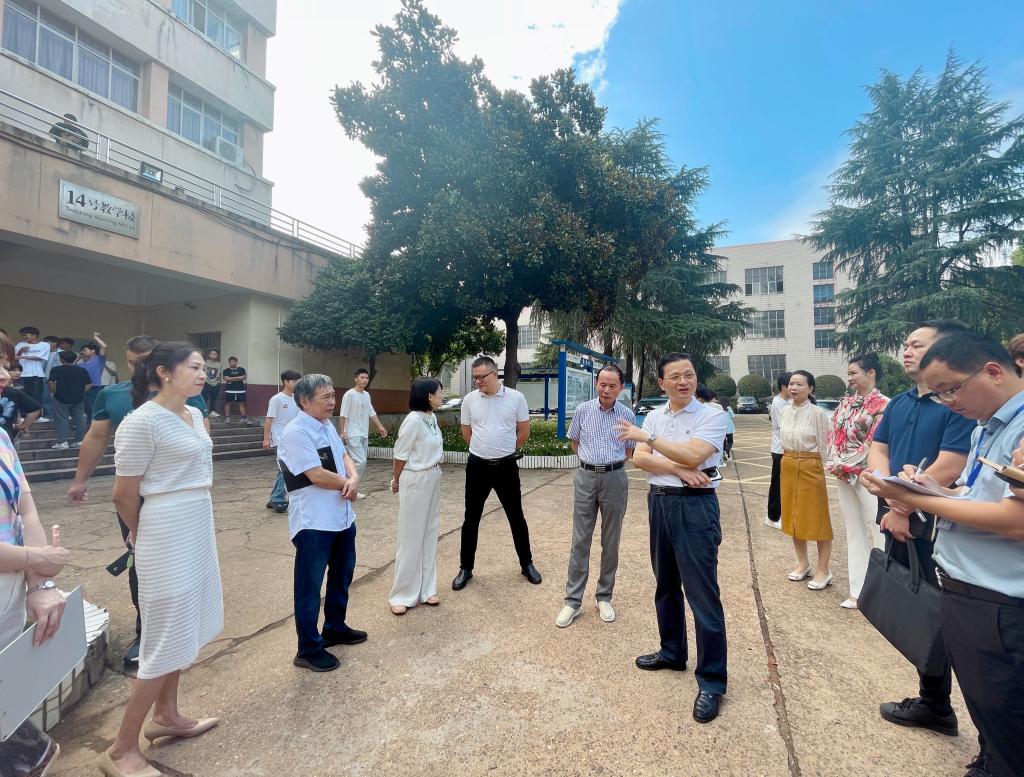9月4日上午8点,继续教育学院党总支书记何纯芳、院长邹兴平、副书记兼副院长谢士成、副院长向英、党总支委员易国萍带队检查2023年秋季新学期开学教学工作,本部助学中心、学工后勤部等部门负责人和各教学部负责人陪同检查。