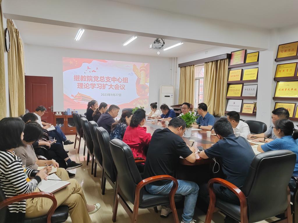 为积极落实教育部《普通高等学校本科教育教学审核评估实施方案(2021—2025 年)》(教督〔2021〕 1 号)精神和学校开展本科教育教学思想大学习活动的文件精神,2023年9月27日上午,在15教三会议室继教学院党总支中心组召开了理论学习扩大会议,系统学习习近平总书记关于教育的重要论述,认真学习教育部关于本科教育教学评建等相关政策文件和学校有关评估工作要求。何纯芳书记主持,邹兴平院长做专题发言,党总支成员和各部门主任参加会议。