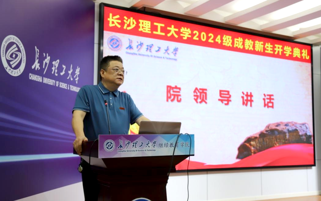 谢朝华副院长代表学院讲话。在表达对成教本部教学点2024级新生的热烈欢迎后,为大家介绍了成教学习阶段的学习任务和要求,并勉励所有新生:要克服工学矛盾,挤时间抢时间,利用碎片化的时间完成专业学习任务;要克服慵懒心理,少应酬少娱乐,亲力亲为完成专业学习任务;克服功利思想,真学实考,加强修为全面提升综合素质。言简意赅、情真意切。