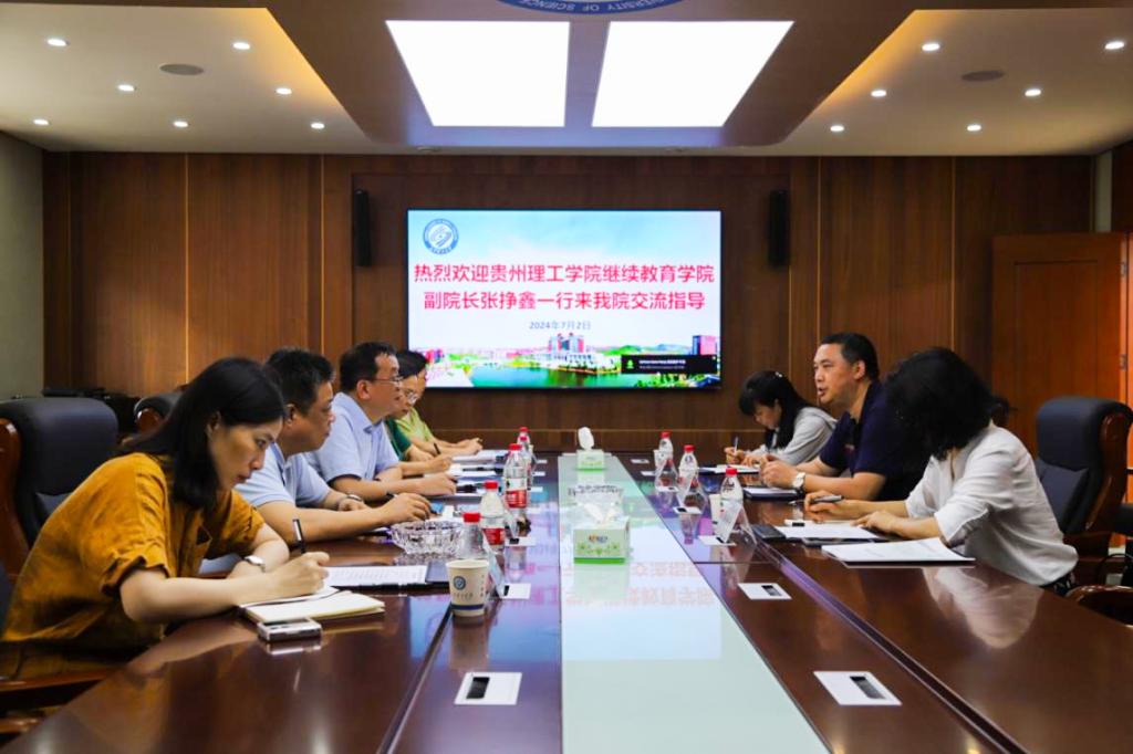 2024年7月2日下午,贵州理工学院继续教育学院副院长张挣鑫一行来我院调研交流。双方在15教四楼会议室进行了座谈交流。伟德betvlctor体育官网继续教育学院党委书记刘思强、副院长谢朝华和成教、自考、培训等相关部门人员参加座谈。