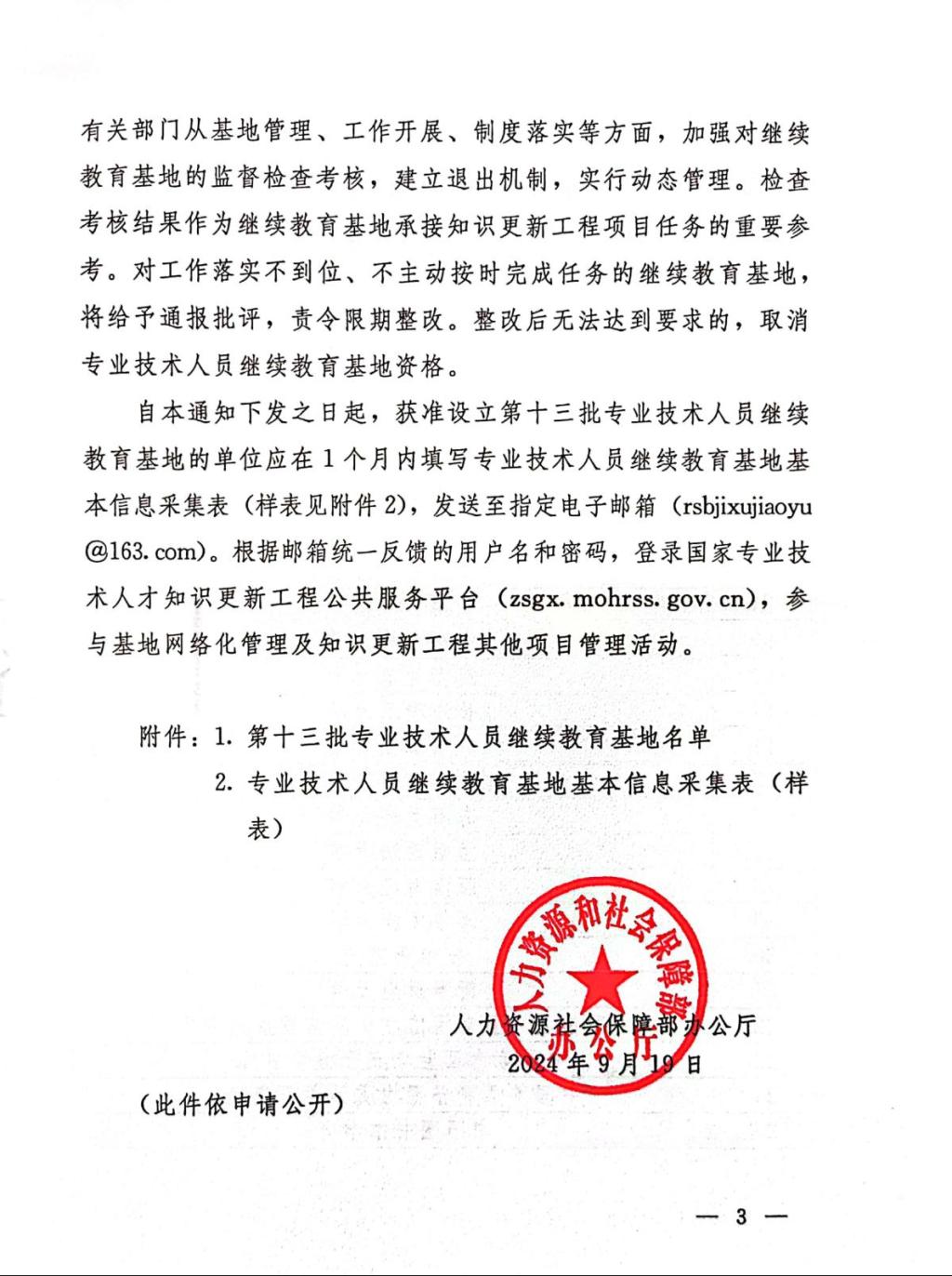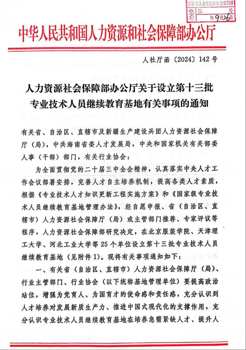 近日,国家人力资源和社会保障部办公厅发布《关于设立第十三批专业技术人员继续教育基地有关事项的通知》(人社厅函〔2024〕142号),伟德betvlctor体育官网获批成为全国第十三批专业技术人员继续教育基地。本批次全国共25家单位获批。