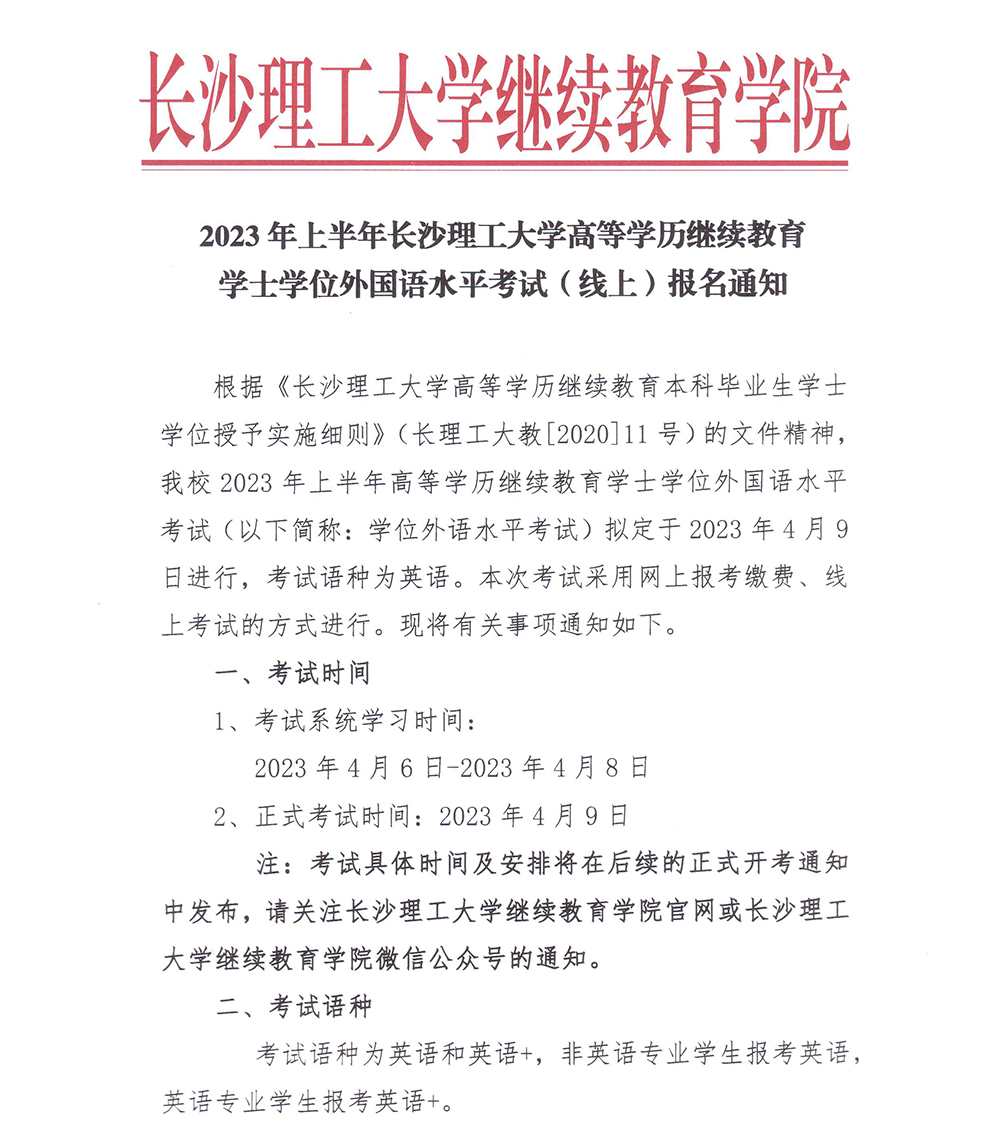 2023年上半年伟德betvlctor体育官网高等学历继续教育学士学位外国语水平考试(线上)报名通知