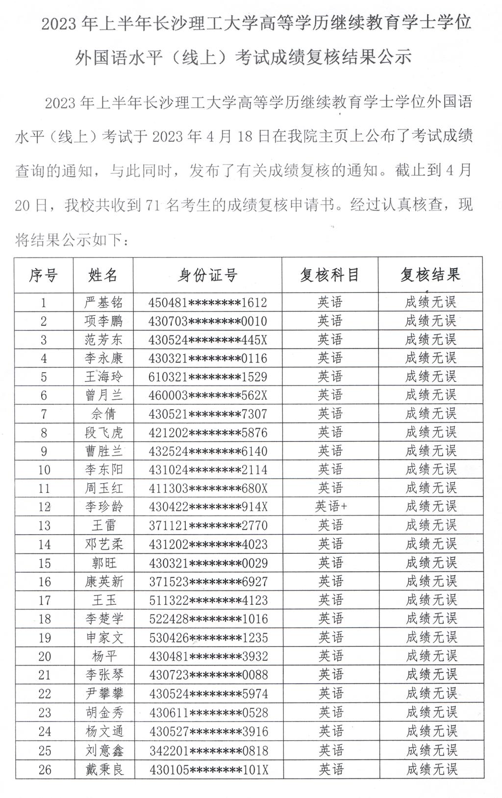 2023年上半年伟德betvlctor体育官网高等学历继续教育学士学位外国语水平(线上)考试成绩复核结果公示