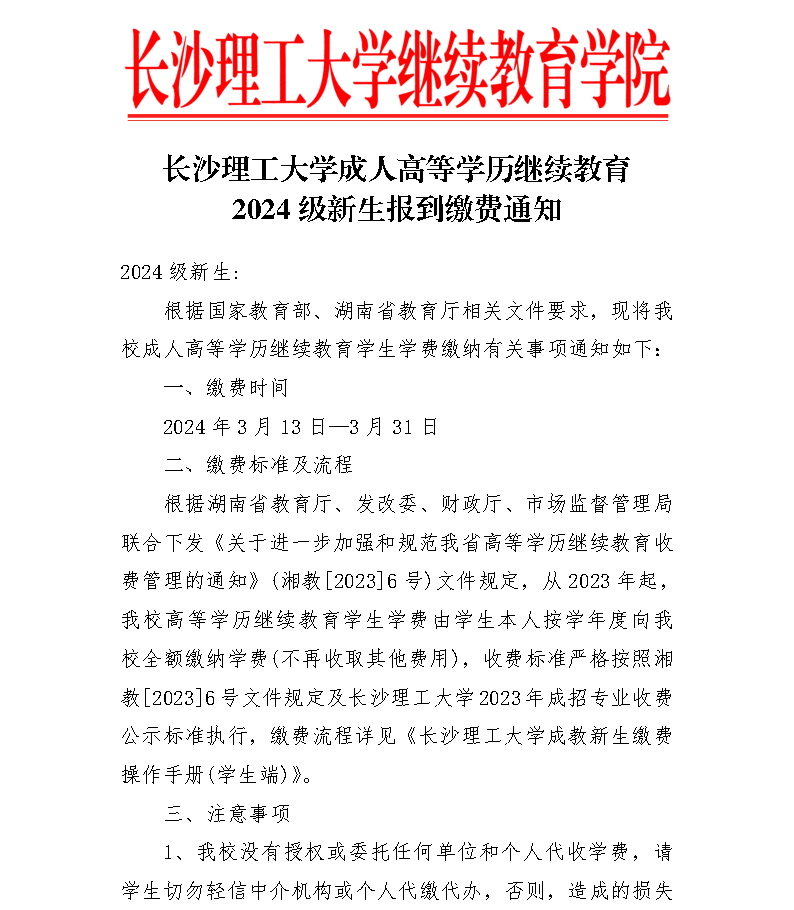 伟德betvlctor体育官网成人高等学历继续教育2024级新生报到缴费通知