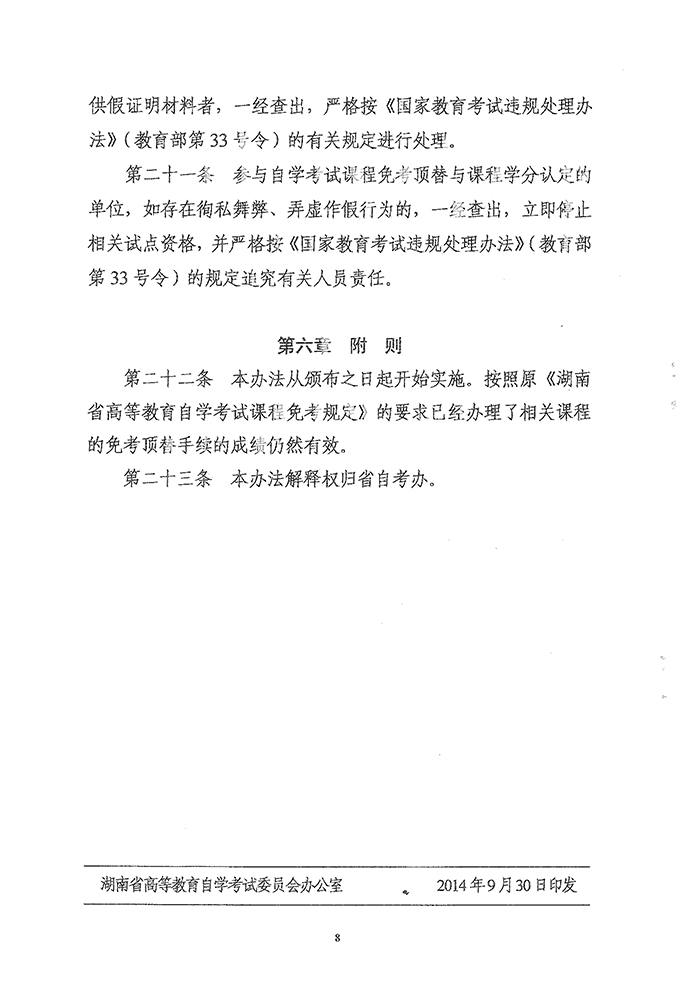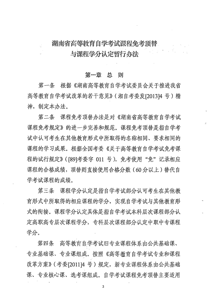湖南省高等教育自学考试课程免考顶替与课程学分认定暂行办法的通知