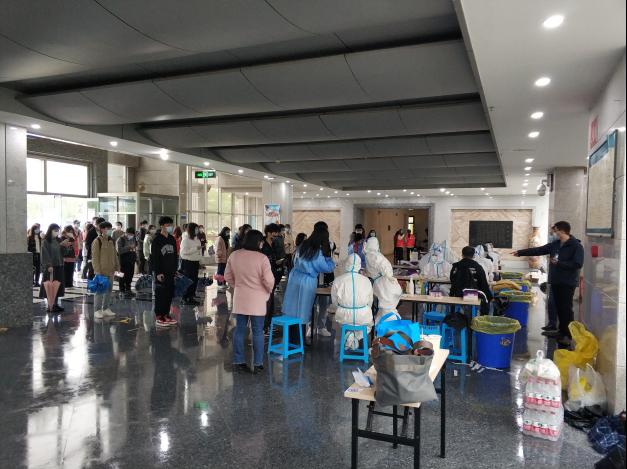 3月31日上午,科研部老师们配合学校深入开展全校师生核酸检测工作。在核酸检测现场,老师们不惧困难,迅速进入工作状态,穿上防护服与医护人员等并肩作战。他们服从指挥、听从安排,按照分工有条不紊地开展维持现场秩序、核酸检测扫码、查看健康绿码、登记信息、现场引导等核酸检测辅助工作,确保核酸采样工作顺利有序地开展。