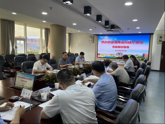 6月7日下午,湖南省科技厅二级巡视员彭敬东一行3人莅临伟德官网,对湘江实验室建设工作进行调研。中国工程院院士郑健龙,副校长曾祥君、黄创霞,科研部、成果转化中心及相关学院负责人参加此次调研。