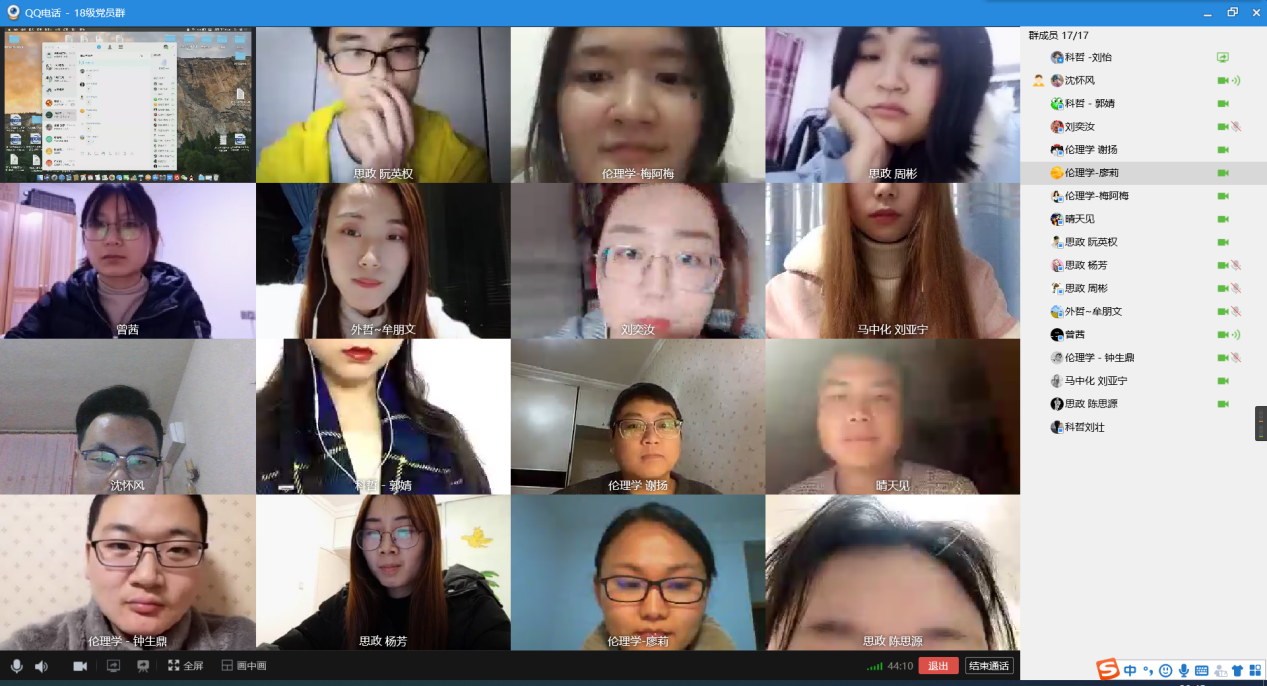 为了切实落实中共中央、湖南省委、伟德betvlctor体育官网的各级防疫防控要求,实时了解各位党员在疫情期间的身体、学习、心理等各方面具体情况。3月6日晚8点,2018级研究生党支部通过线上平台召开了“齐心战疫 党旗飘扬”专题组织生活会,本次生活会由支部书记沈康同志主持,全体支部党员参加。