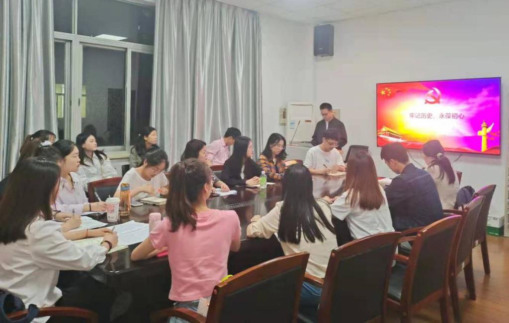 随后,吴涛同志根据本次学习的具体内容和大家的讨论情况作了以《牢记历史,永葆初心》为主题的专题分享。主要从走得再远都不能忘记来时的路、革命精神是党和国家的宝贵财富、了解历史才能看得远,永葆初心才能走得远等三个方面展开阐释。一个没有来路的国家,将是一个没有去路的国家。学习历史,要重点学习党在各个历史时期形成的时代精神,它是我们党和国家的宝贝财富。最后,他总结道:了解历史才能看的远,永葆初心才能走得远。因此我们要牢记历史,避免陷入历史虚无主义、娱乐主义的陷阱,永葆初心与使命,主动担当起民族复兴的大任。吴涛同志的分享令人动容,让我们在进一步了解党何以伟大,何以持续壮大的深层密码的同时增强了自身的责任感和使命感。他再次重申了历史的重要性,表示我们走的再远,都不能忘记来时的路。