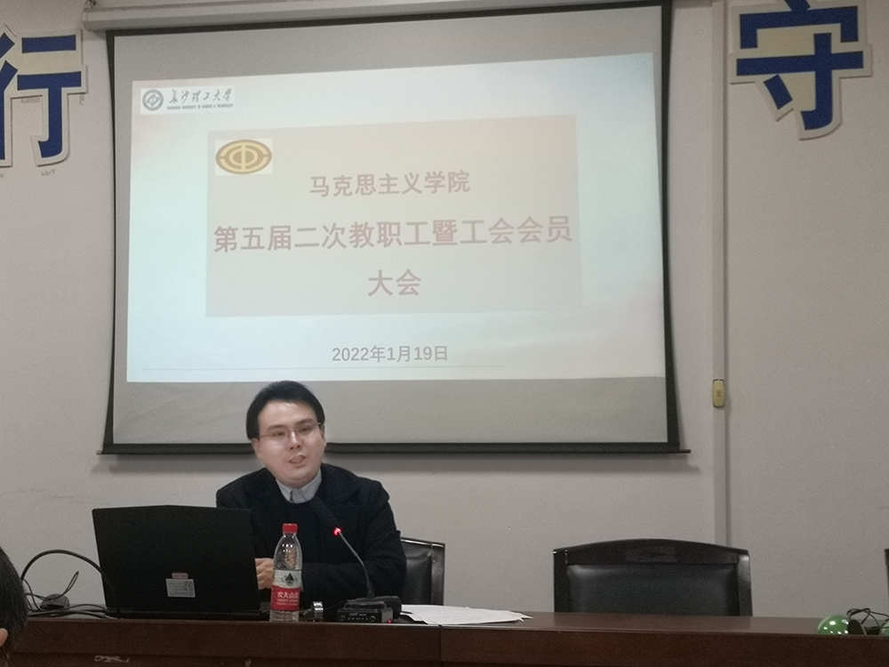 经学院党委同意,学校工会批准,2021年1月19日下午,马克思主义学院第五届二次教职工暨工会会员大会在云塘校区文科楼C-202会议室举行。本次大会由学院党委书记易显飞教授主持,学院全体教职工参加了大会。