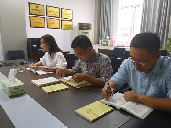喻书记先为大家梳理了《习近平新时代中国特色社会主义思想学习纲要》一书,并为大家通读了第六章《中国共产党领导是中国特色社会主义最本质的特征》。院长胡旭跃通读了第十三章《建设美丽中国》,并谈了自己对于“绿水青山就是金山银山”这一论述的认识。其他院领导分别读了该书的其他章节。