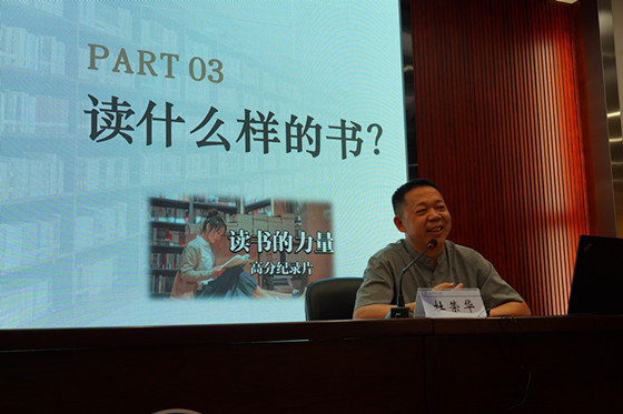 最后,杜荣华希望广大学生将阅读融入到自己的生活中,学会阅读,享受阅读的乐趣,以此提升自己的素质和能力。