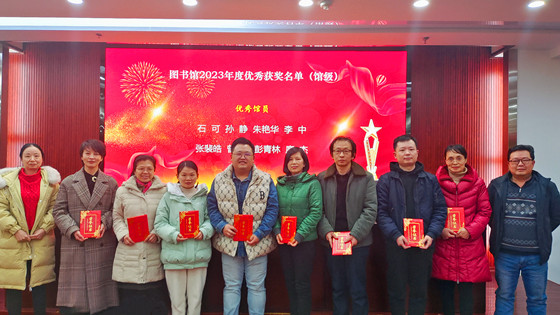 最后,刘利宣布2023年度图书馆获得表彰的集体和个人名单,并号召全体职工要向先进集体和优秀馆员学习。馆领导为获得表彰的集体和个人颁发证书,并合影留念。