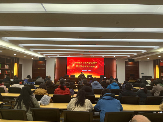 馆长杜荣华以《决胜建成百强大学征程中图书馆的机遇与挑战》为题,2023年度图书馆工作完成情况进行了全面总结。过去的一年是图书馆推动转型发展迈出坚实步伐、取得积极进展的一年,启动了提高内部治理能力的机构改革,推动了金盆岭校区AB馆的提质改造工作,推动了“长理云影悦读”的阅读推广品牌化与课程化建设,进一步深化与拓展了学科服务,通过制度化建设进一步规范了图书馆的科技服务工作,通借通还、“你购书我买单”等创新工作进一步提高了读者服务的水平与质量,启动了图书馆岗位设置与全员聘任的思想动员工作,为学校建设发展发挥好图书馆作用