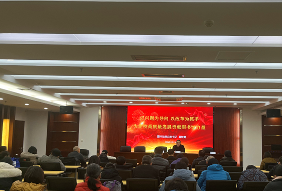 党总支书记夏智勇作了《以问题为导向 以改革为抓手 为学校高质量发展贡献图书馆力量》的报告。他指出,2023年,图书馆全体职工同心协力、砥砺奋进,理论学习扎实,主题教育透彻,党建引领有力,工会工作聚人心,人才培养显著,学科服务到位,创新工作有亮点。他强调,2024年,图书馆人要坚持问题导向,以改革与项目为抓手,积极转变观念,做好以下几方面的工作:加强理论学习,提高政治站位;以机构改革、全员聘任提升图书馆内部治理能力;以B馆改造建设促进图书馆硬件与服务提质升级;以学科服务强化图书馆职能转型;以阅读推广通识教育凸显图书馆的育人功能;以建章立制筑牢清廉图书馆的堤坝;以实干、担当贡献图书馆员力量,共同谱写学校事业发展的新篇章
