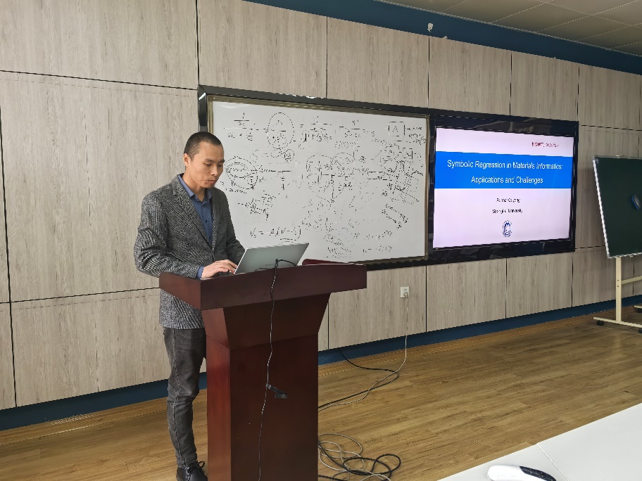 2024年12月8日下午,上海大学欧阳润海教授应邀来我院进行学术交流,做了名为《Symbolic Regression in Materials informatics: Applications and challenges》的学术报告。报告在理科楼C509会议室进行,学院的青年老师和学生20余人参加,报告由张卫兵副院长主持。