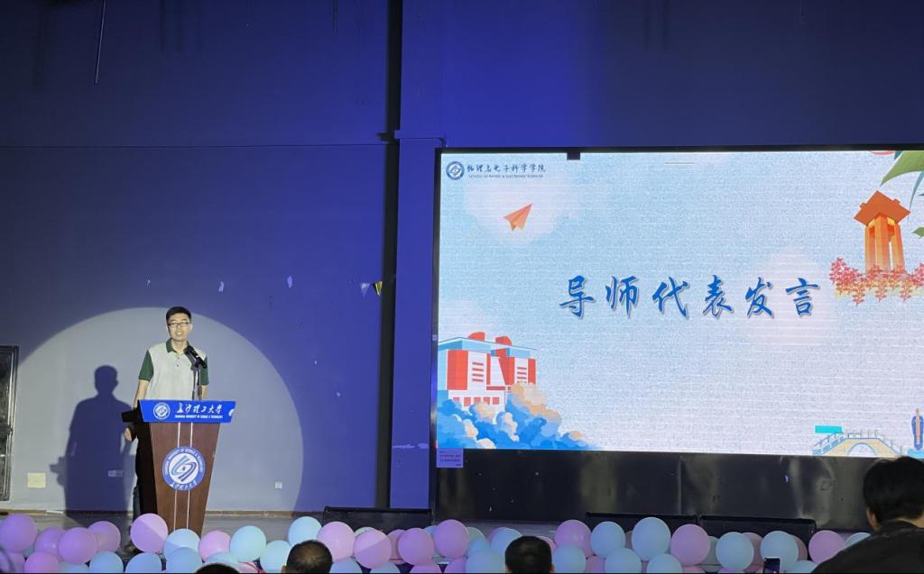 毕业生班主任代表张华林老师和毕业生导师代表卞立安老师发言,表达了对同学们毕业的祝贺。他们肯定了同学们在校学习的努力与付出,并叮嘱同学们不断超越自我,实现自我价值。