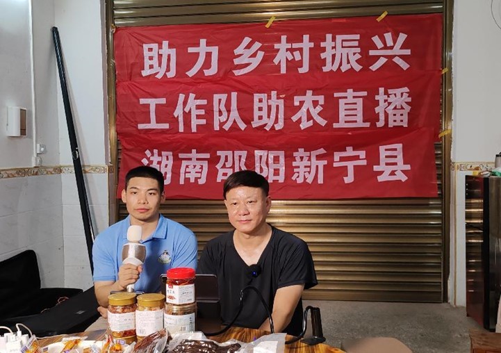 “家人们,大家好,这款是来自我们新宁本地的香辣刁子鱼,里面的鱼是由我们当地夫夷河打捞上来的鱼制作而成,不仅能直接吃,下饭更是一绝,辣度也刚刚合适,老人小孩都能吃,是居家必备良品!”这是”小小科学家·科普创造营“团队的学生正在开展的“直播带货”活动。