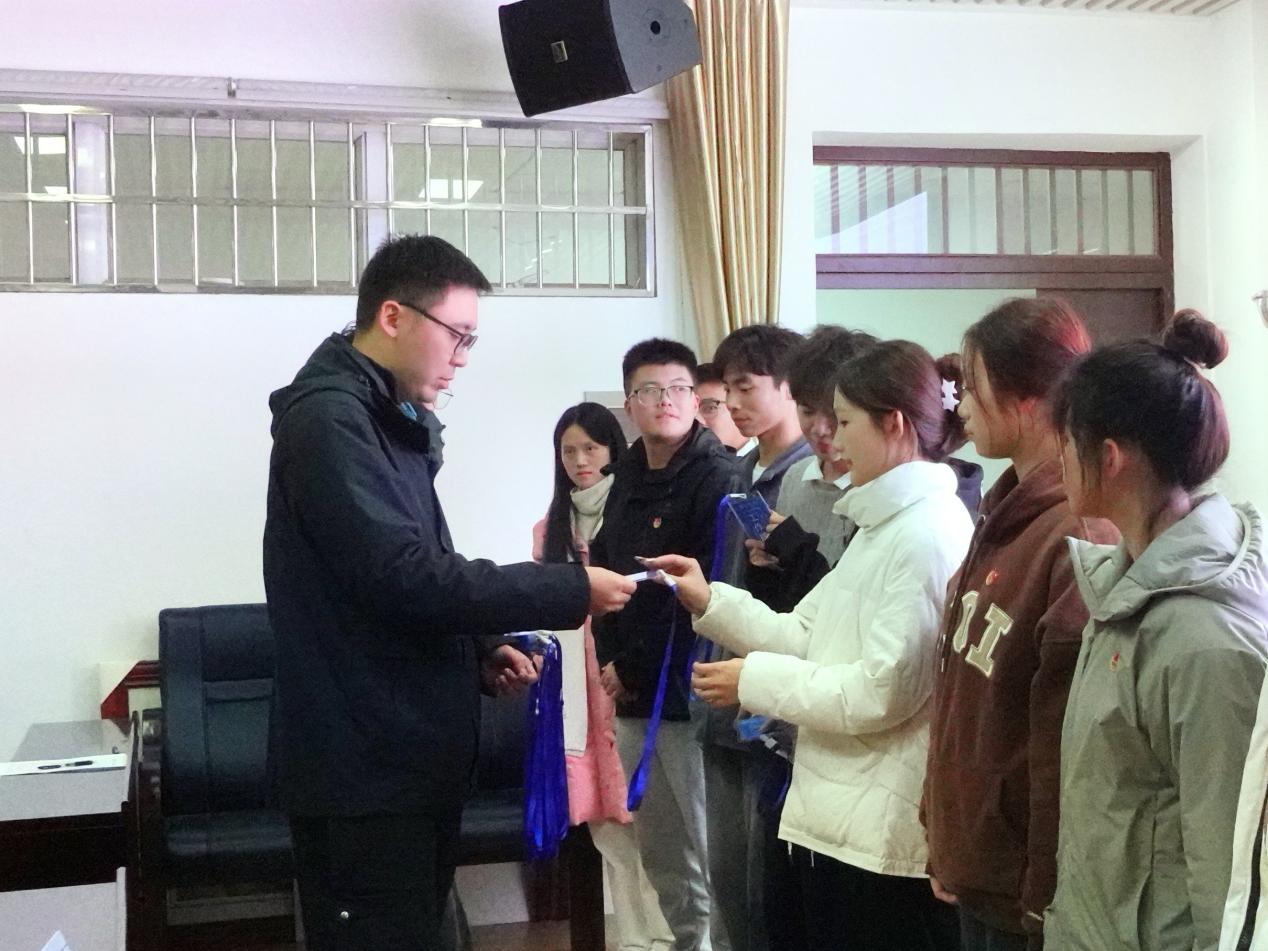 随后,进行了授牌环节。姚巍老师将象征着责任与荣誉的工作牌郑重地授予了学生会新进成员。这一时刻,充满了庄重与神圣,学生会成员们也感受到了肩上沉甸甸的责任。
