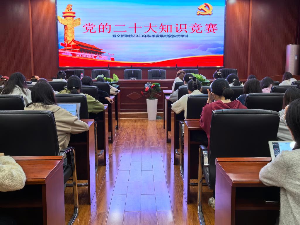 为深入落实并贯彻落实党的二十大精神,积极探索“互联网+党建”的新模式,进一步提升入党积极分子的理论知识能力水平,10月19日19时,“党的二十大知识竞赛暨文新学院2023年秋季发展对象推优考试”于伟德官网金盆岭校区九号教学楼218室成功举行。