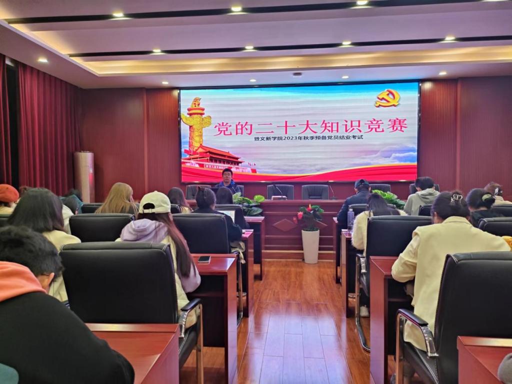 为深入落实并贯彻落实党的二十大精神,积极探索“互联网+党建”的新模式,进一步提升预备党员的理论知识能力水平,11月16日19时10分,“党的二十大知识竞赛暨文新学院2023年秋季预备党员结业考试”于伟德官网金盆岭校区九号教学楼218室成功举行。
